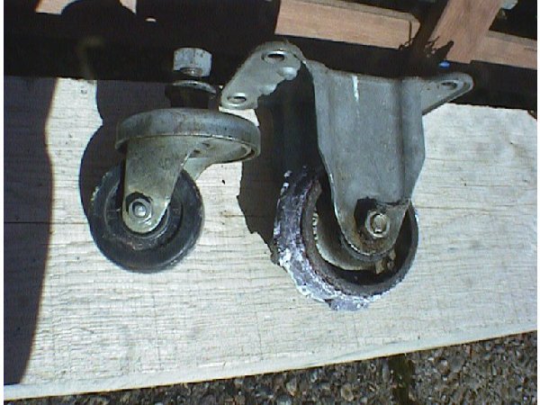 plastic tyres which broke up at the slightest bump and then on each revolution of the castor,